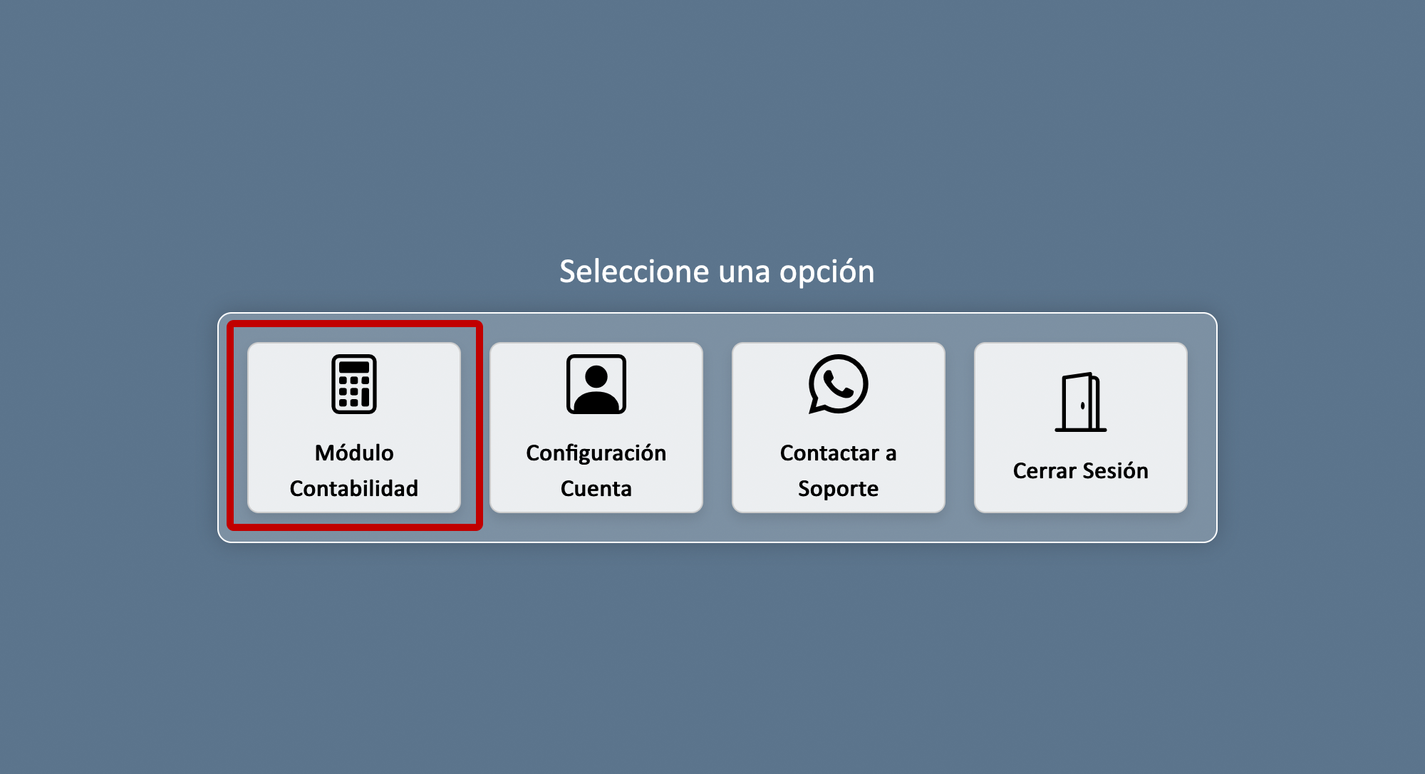 Acceder al módulo contabilidad: Una vez dentro del sistema, dirígete al módulo Contabilidad ubicado en el menú principal.