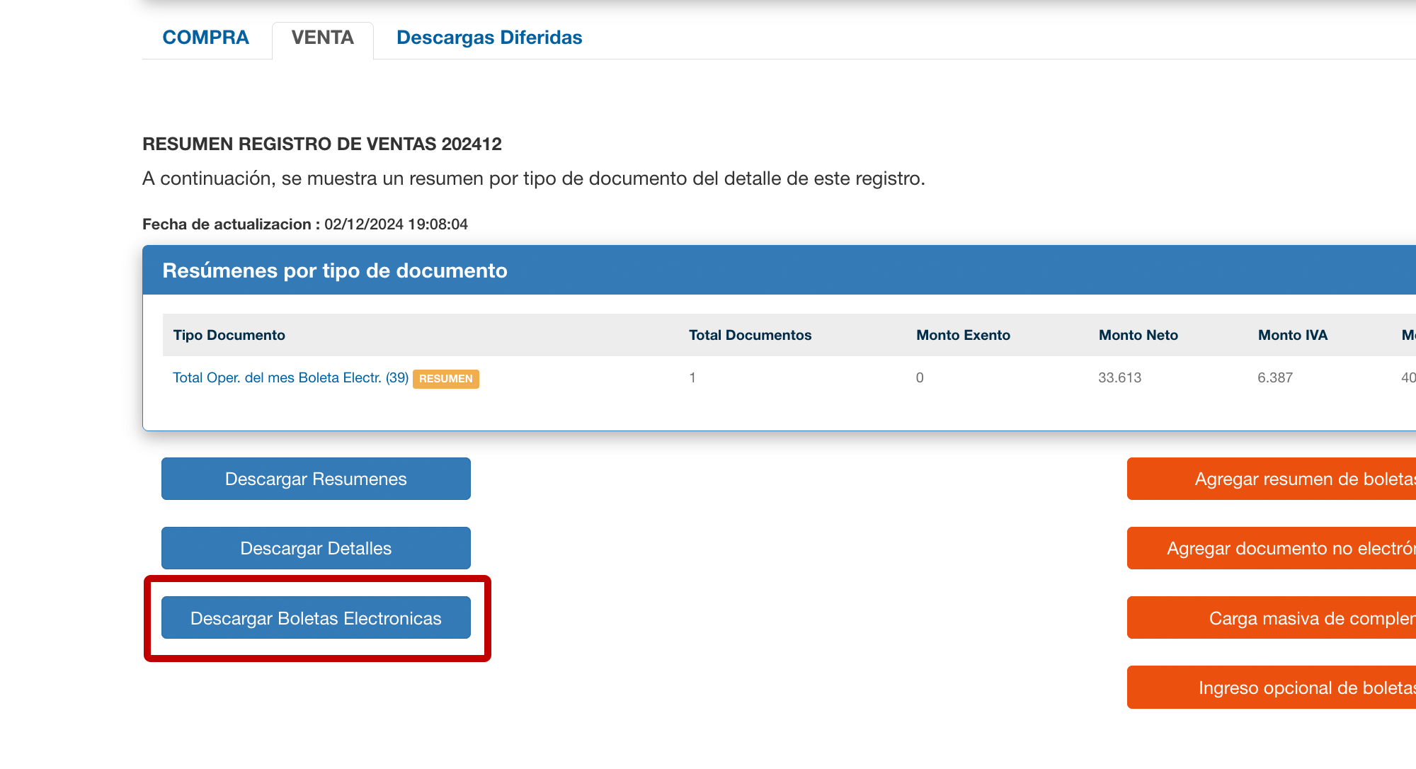 Registro de Boletas Electrónicas de Venta